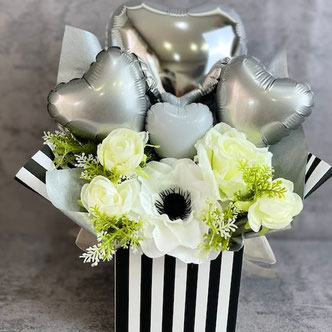 特別な日やお祝いのシーンにぴったりなカラフルなバルーン、華やかなフレグランスフラワーでコーディネイトするギフトをご提案させていただいております。